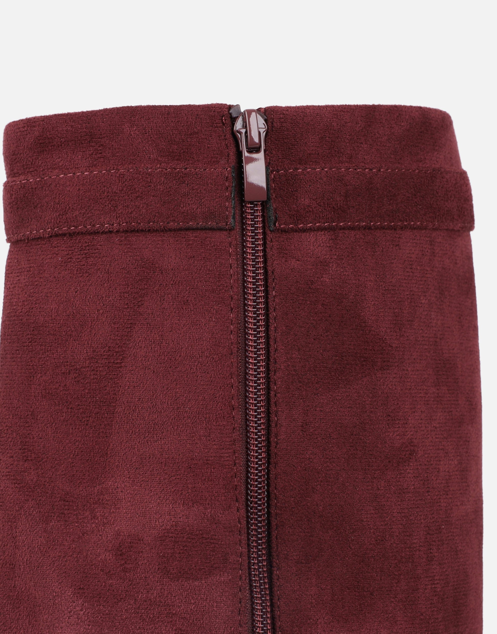 Anais Burgundy Microfibre Foldover Buckle Detail Heeled Boots